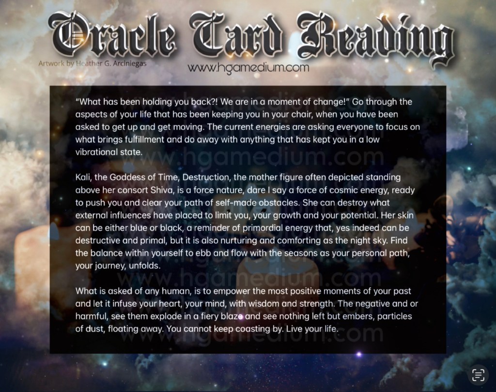 Deck Used: Goddess Power Oracle Deck by Colette Baron-Reid