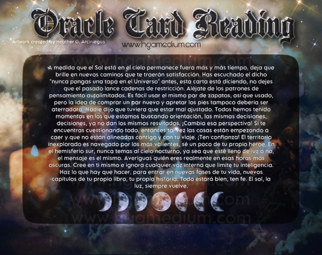 Tenga en cuenta que no importa cuán precisas sean las lecturas, esto no reemplaza el asesoramiento legal o médico, ni tiene la intención de hacerlo (esto también incluye la mediumnidad y los mensajes canalados) esto es solo para fines de entretenimiento.