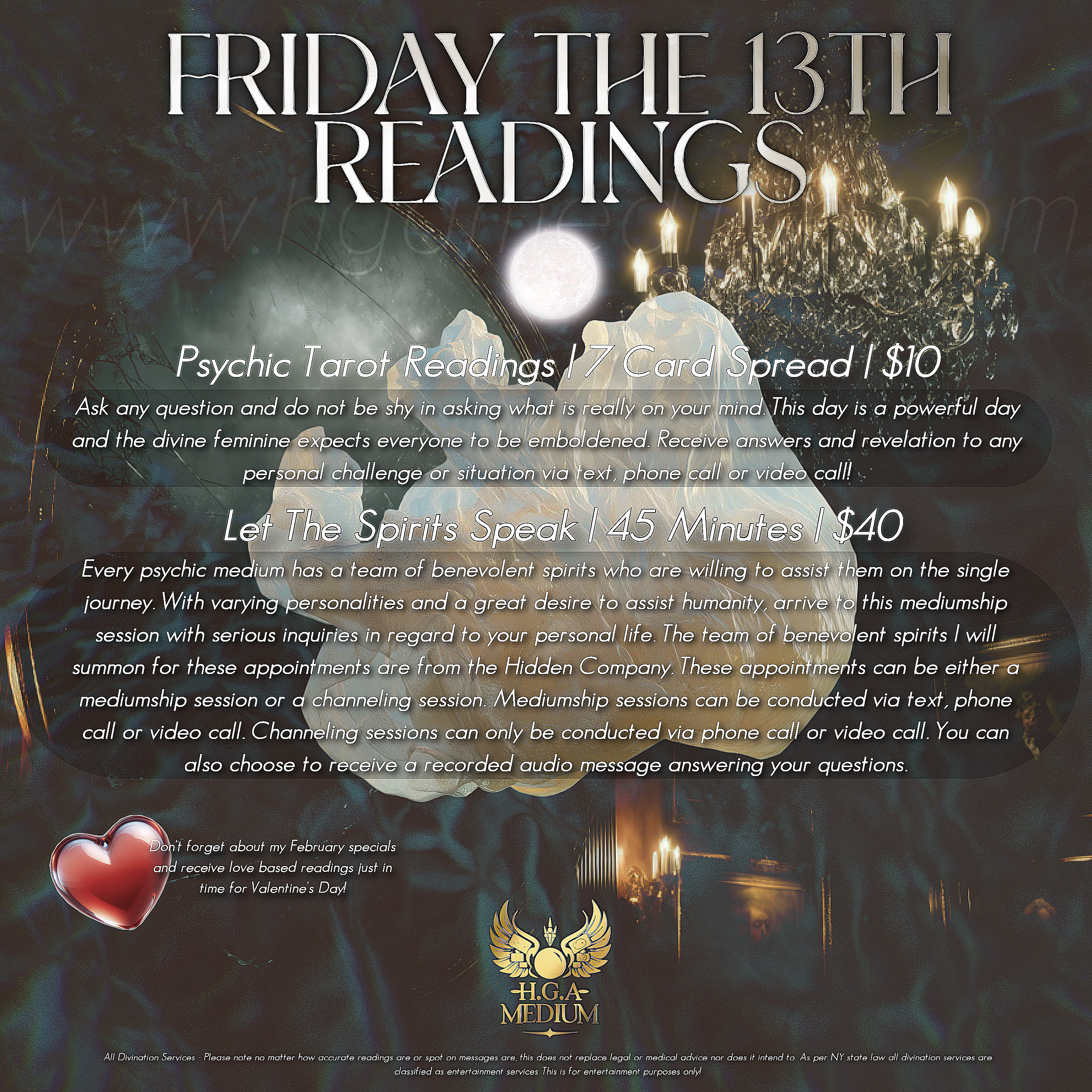 Did you know that H.G.A Medium stands for Heather Guadalupe Arciniegas Medium?! Always look for my monthly specials announced in videos and flyers posted on my social media pages.